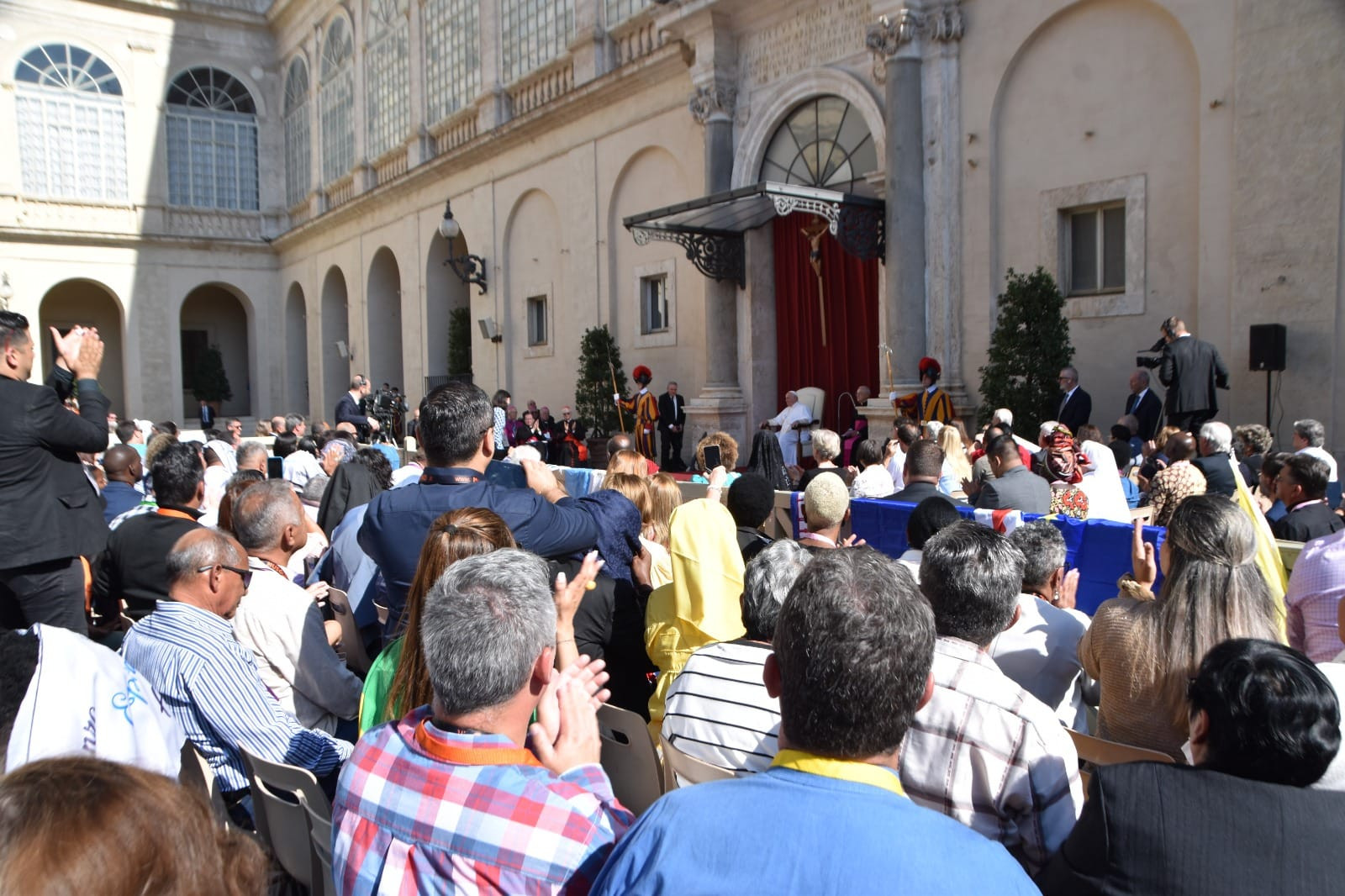 Ao final da audiência, o Santo Padre abençoou os presentes, que, em seguida, através de aplausos e cânticos, expressaram sua gratidão e emoção por estarem com o Pontífice.