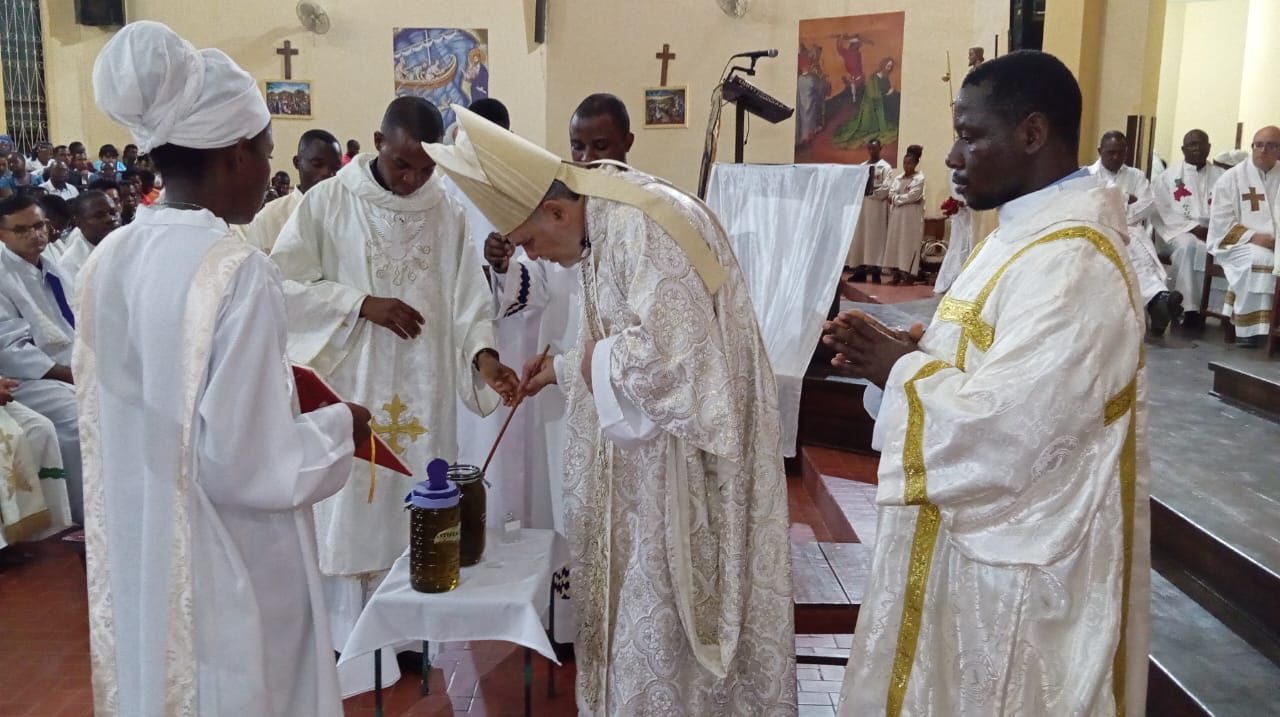 Vivendo a Semana Santa em preparação para a Páscoa do Senhor, a Diocese de Tete, como já é habitual, antecipou para esta Terça-feira, dia 15 de Abril, a celebração da Missa Crismal. Na Missa Crismal, presidida pelo Bispo de Tete e concelebrada por quase todos os sacerdotes que trabalham na diocese, teve lugar pelas 18.00 na Catedral de Tete. Na Missa foram abençoados o óleo dos catecúmenos e dos enfermos e consagrado o Santo Crisma. Os sacerdotes, renovaram as promessas sacerdotais pronunciadas no dia da ordenação, e celebraram o seu Jubileu. Na homilia Dom Diamantino Antunes, pediu aos fiéis que rezassem pelos seus pastores e agradecessem a Deus pelo seu serviço ministerial. Convidou os sacerdotes a ser bons pastores a exemplo de Jesus Cristo, bom pastor, disponíveis e capazes de procurar, acolher e alegrar-se com todos os seus fiéis: “Agradeço-vos pelo vosso "sim", e por tantos "sins" diários, escondidos, que só o Senhor conhece. Agradeço-vos pelo vosso "sim" a doar a vida unidos a Jesus: aqui está a fonte pura da nossa alegria”.