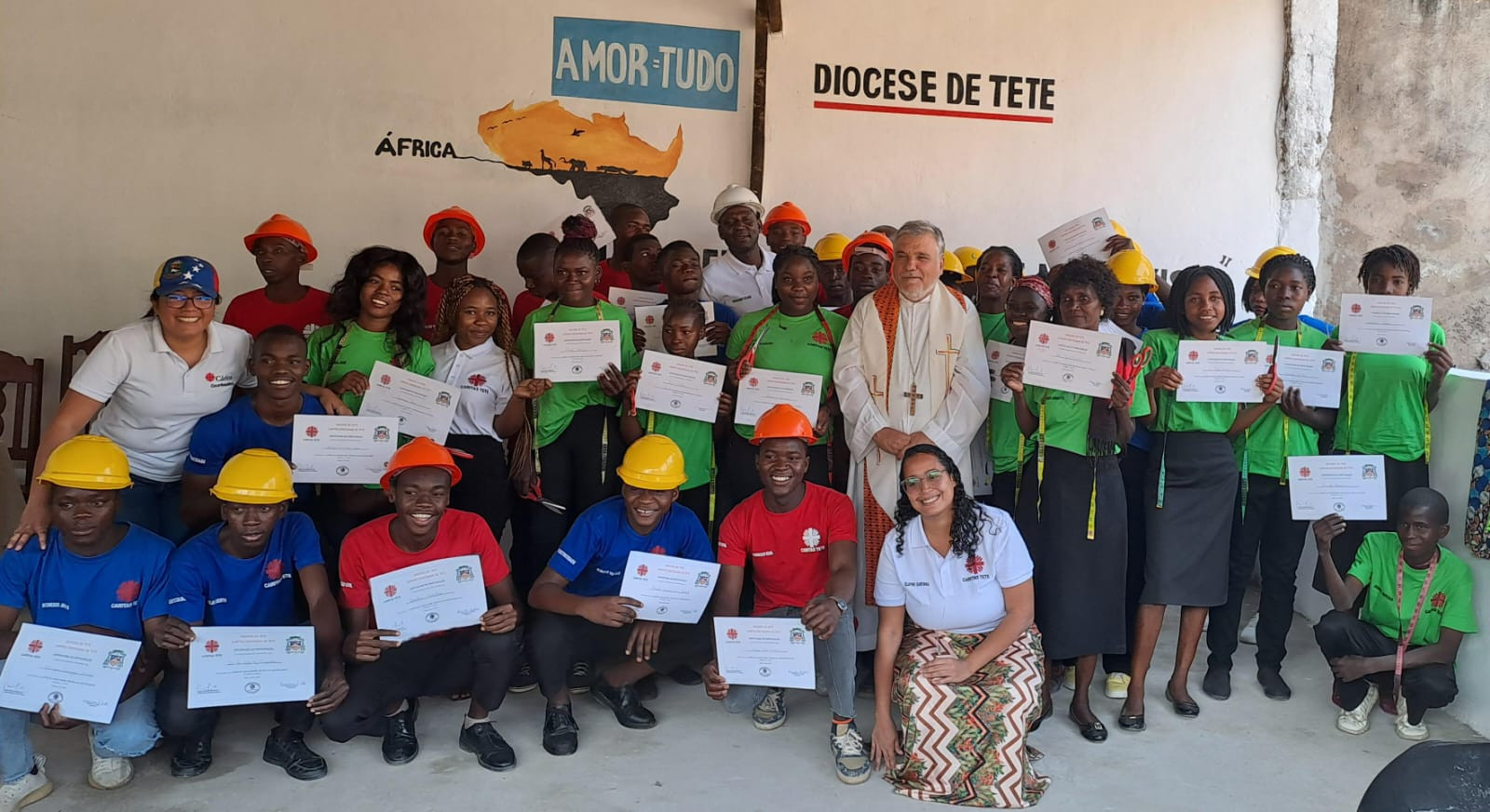 No dia 31 de Julho, na sede da Caritas Diocesana de Tete, realizou-se a cerimónia da entrega de diplomas a um grupo de 32 jovens que frequentaram o curso profissional nos sectores da eletricidade, costura e construção civil. Os cursos tiveram a duração de 3 meses, onde além da teoria os alunos tiveram a possibilidade de fazer prática realizando trabalhos de eletrificação, alvenaria e costura.