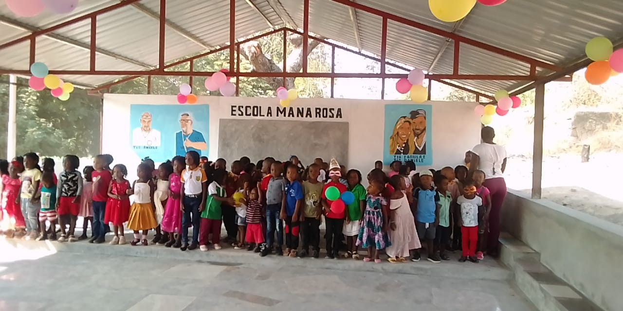 A escolinha Mana Rosa acolhe mais de 70 crianças dos 3 aos 5 anos de idade que vivem no Bairro Sansão Muthema. Funcionando desde 2022, esta instituição de apoio às crianças está confiada à responsabilidade das Irmãs de Notre Dame que trabalham na Paróquia de São pedro.